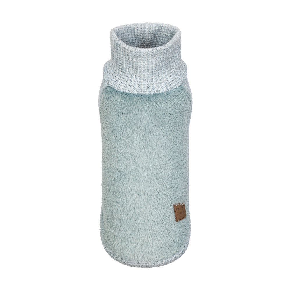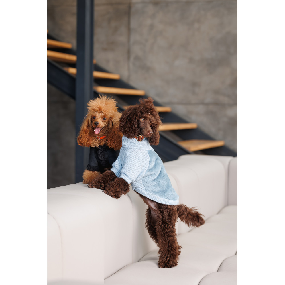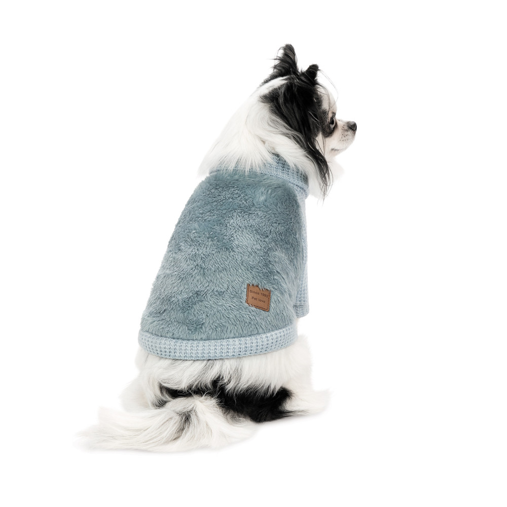 Ніжний блакитний колір, вишукані лінії, цікаве сполучення фактур одразу привертають увагу. Светрик не лише красивий, але й дуже зручний – хвостики це оцінять одразу. Матеріал надзвичайно м’який та пухнастий, тож песику у вітряну прохолодну погоду буде тепло й затишно.