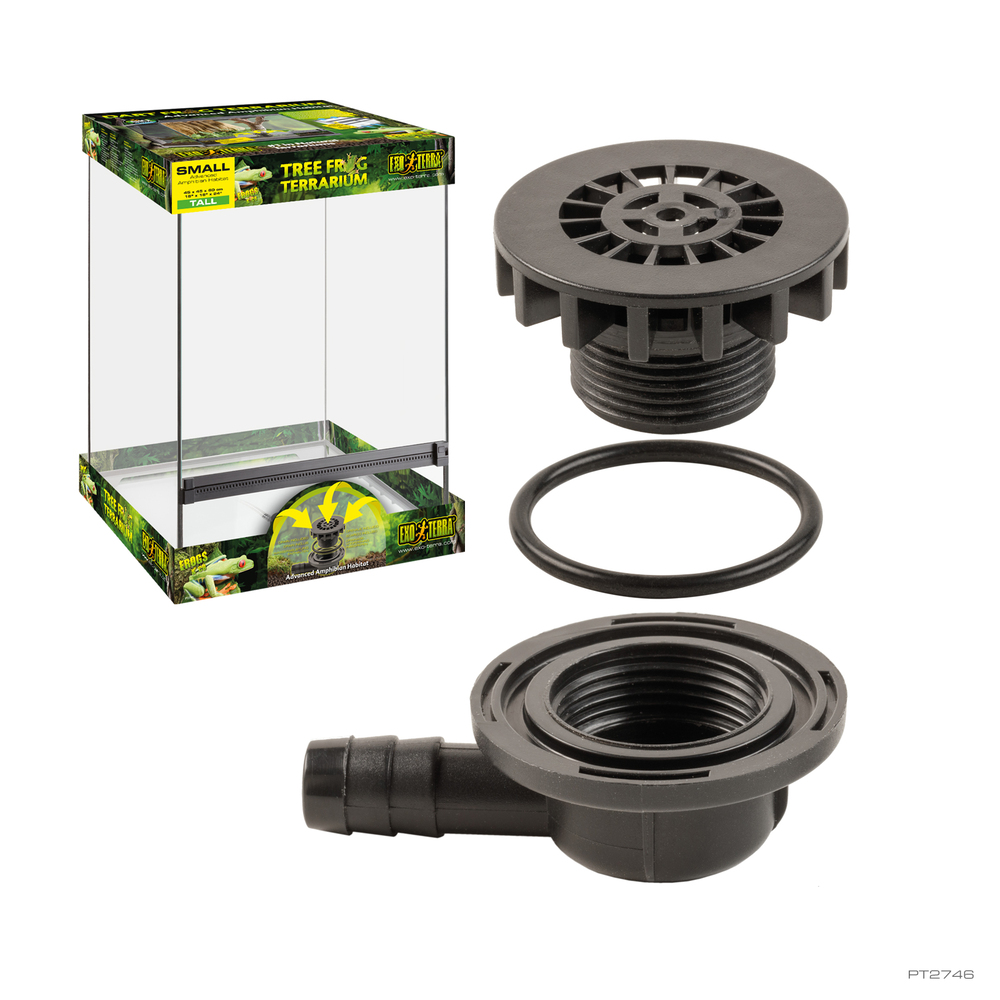 Нижня частина тераріуму є водонепроникною після підключення трубки, кутового з’єднувача та запірного клапана до дренажного отвору. Дренаж забезпечує безпроблемну заміну води та видалення надлишку вологи.
