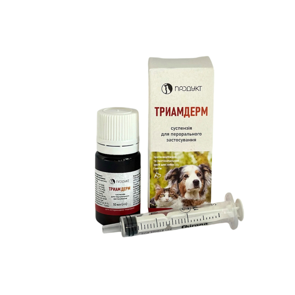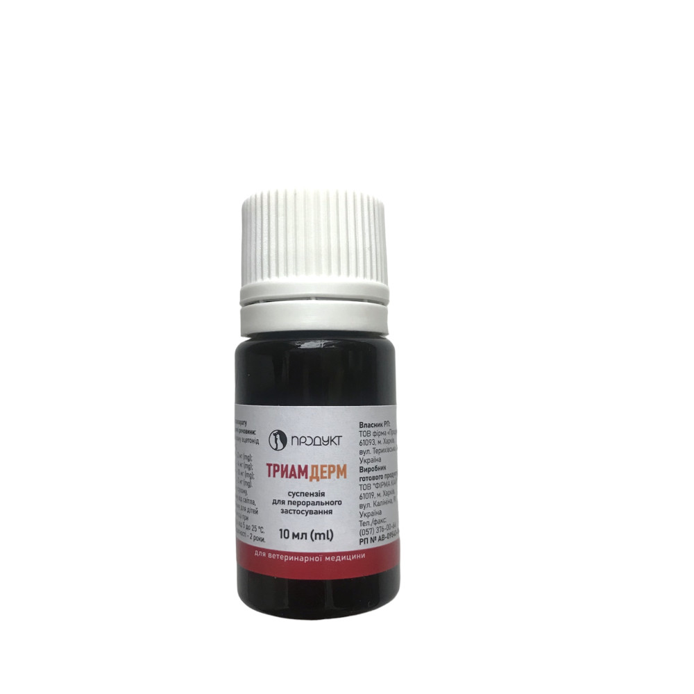 Препарат для лечения собак и котов при воспалительных, аутоиммунных, аллергических и других заболеваниях кожи (дерматиты, экземы, нейродермит, расчесывания кожи, реакции на укусы насекомых и другие). Содержит синтетический глюкокортикоид триамцинолон с выраженным противовоспалительным, противоаллергическим и десенсибилизирующим действием и комплекс витаминов группы В, которые улучшают обмен веществ, способствуют регенерации тканей, улучшают состояние кожного покрова. Выпускается в виде суспензии для перорального применения в полимерных флаконах по 10 мл в комплекте со шприцом-дозатором.