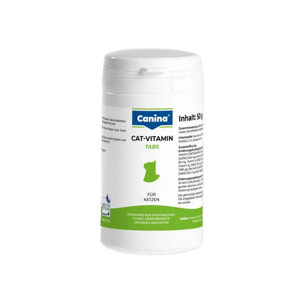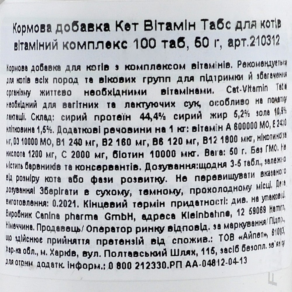 Комплекс вітамінів для котів. Покращують метаболізм, підвищують імунітет, забезпечують здорове зростання. Cat-Vitamin Tabs завдяки вмісту молочних дріжджів характеризуються високим смаковим сприйняттям і підходять навіть найвибагливішим тваринам.
