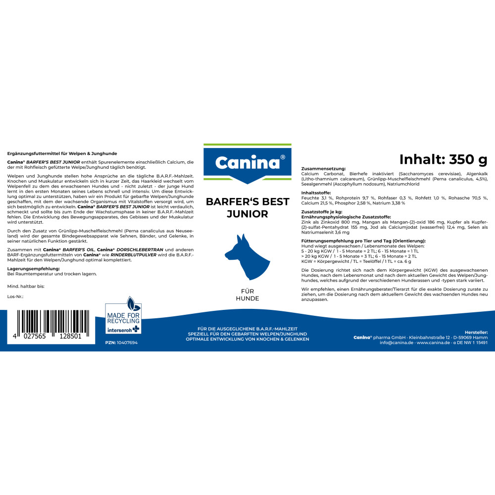 Кормова добавка для оптимальних доповнень щоденного харчування за системою BARF або з природними типами годування цуценят та молодих собак. Містить комплекс вітамінів і мінералів, щоб покрити щоденну потребу в них з урахуванням цуценя, що росте. Оскільки при годівлі м'яса тварин має баланс CA: P, продукт містить оптимально обрану кількість кальцію.