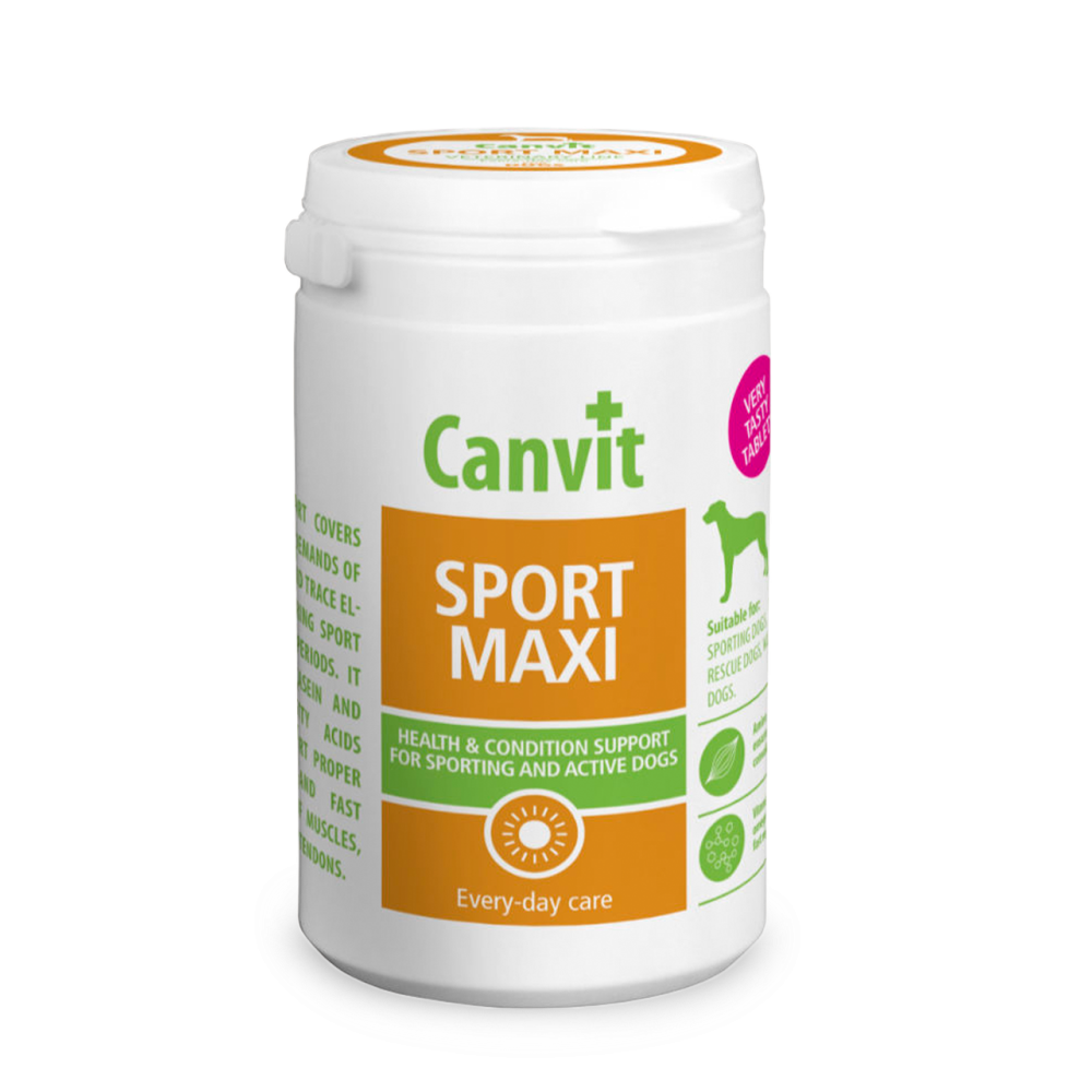 Canvit Sport Maxi є відмінним джерелом енергії, вітамінів, необхідних амінокислот, а також пробіотиків для підтримки витривалості при підвищених фізичних навантаженнях. Омега-3,6 жирні кислоти сприяють нормальному функціонуванню та швидкому відновленню м’язів, суглобів та сухожилля у активних та спортивних собак.