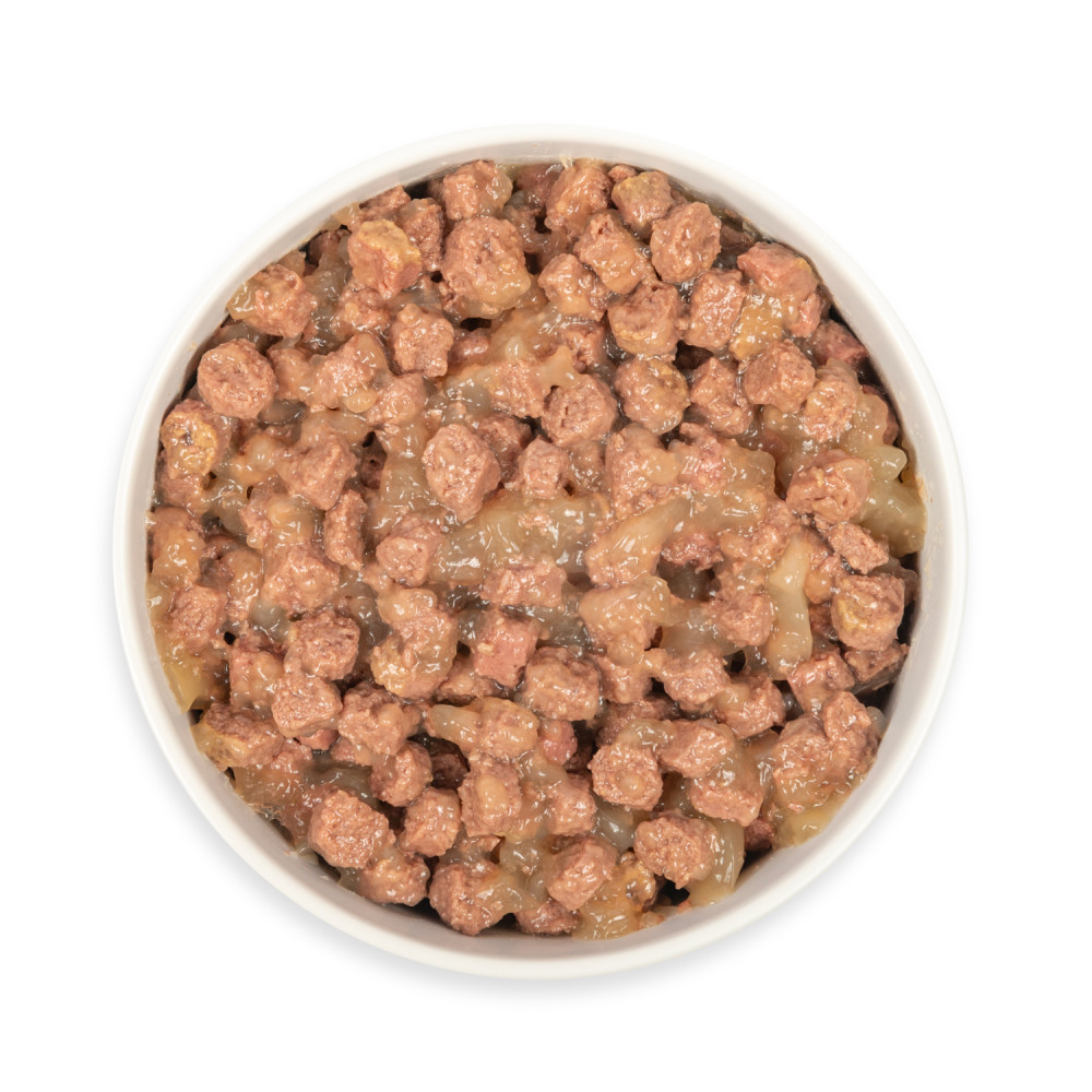 Склад: м'ясо та продукти тваринного походження не менше 86% у шматочках (зокрема з яловичини – 56%, з курки – 30%), злаки. Шматочки становлять не менше 50%.