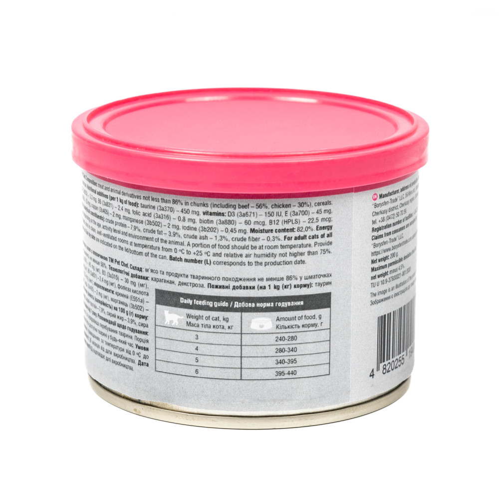 М'ясні шматочки Pet Chef містять таурин – незамінну амінокислоту, яку котячий організм самостійно не виробляє й отримує тільки у складі їжі.