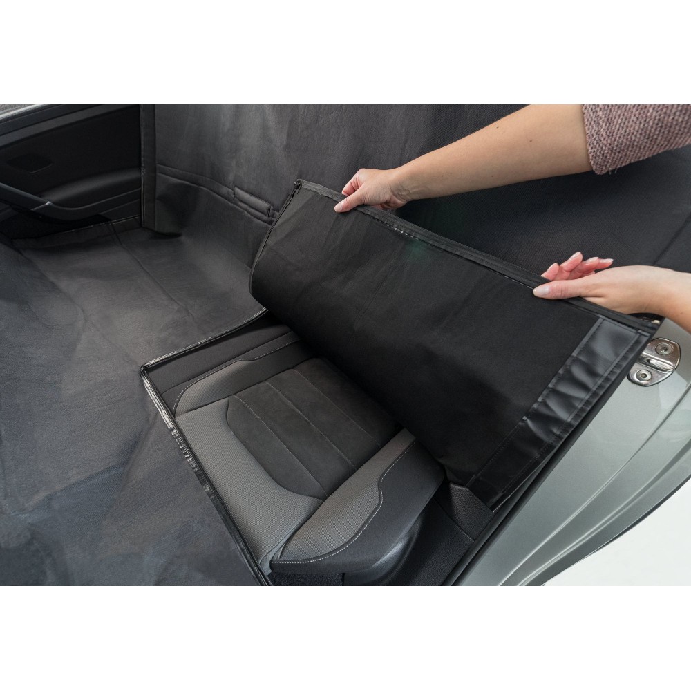 Для захисту сидіння автомобіля, в якому транспортується собака, від забруднень, пошкоджень та залишків шерсті, використовується килимок захисний в авто нейлон чорний 1,45*1,60м, представлений відомим німецьким виробником зоотоварів Тріксі.