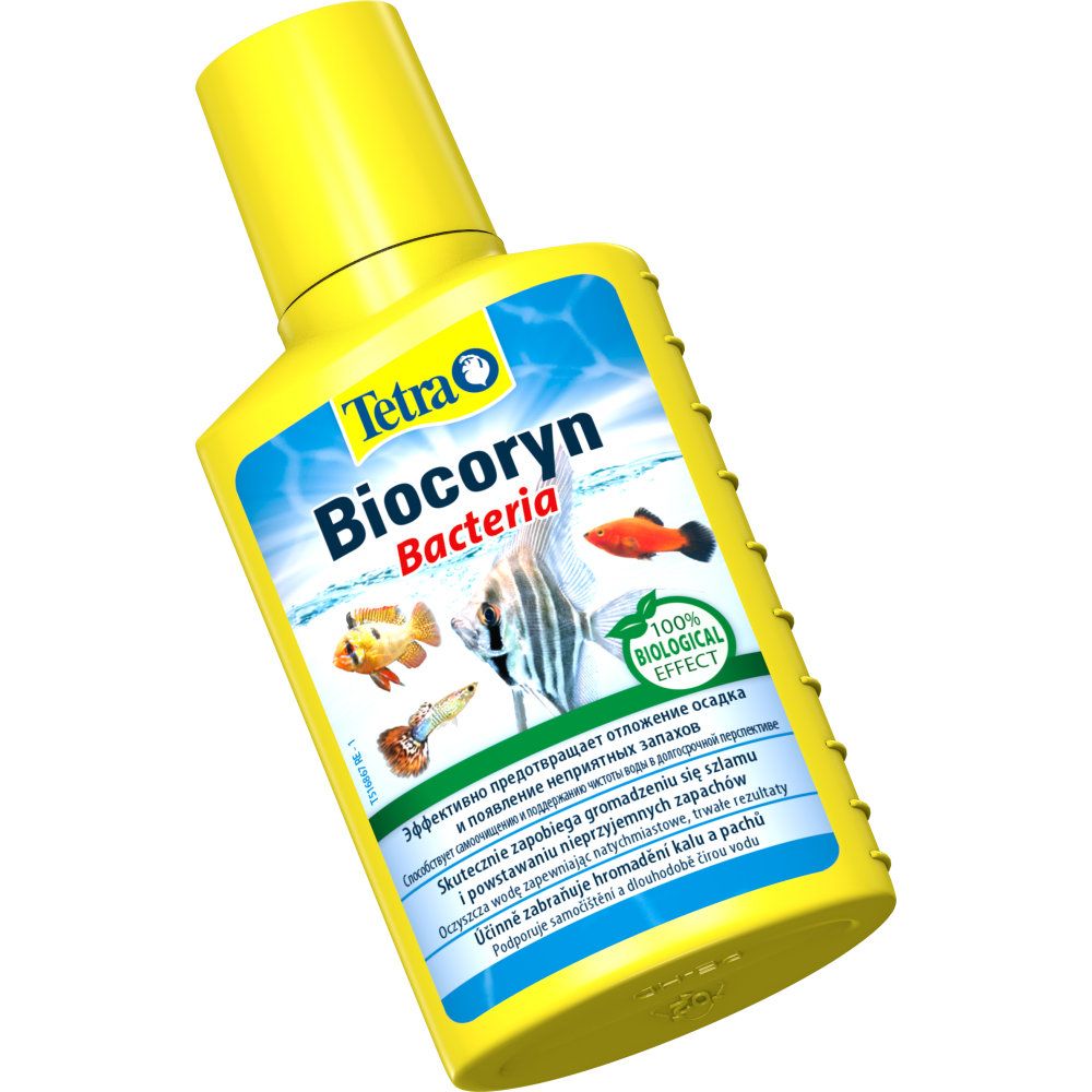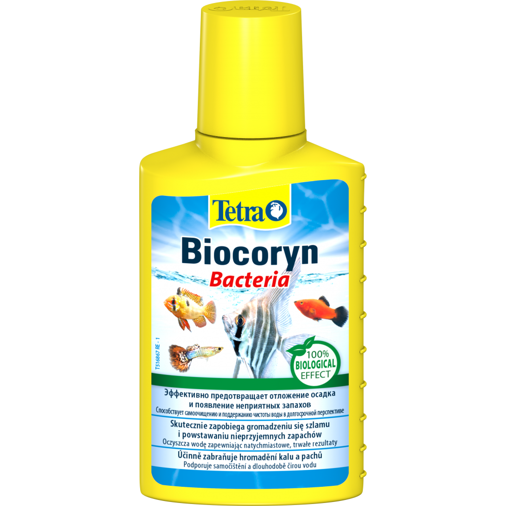 Концентрована суспензія спор Tetra Biocoryn містить понад 10 мільярдів паличкоподібних бактерій роду Bacillus у пляшечці об'ємом 100 мл. Інноваційна рідка формула діє швидко та забезпечує легке застосування. Тетра Біокорин підходить для прісноводних і морських акваріумів.