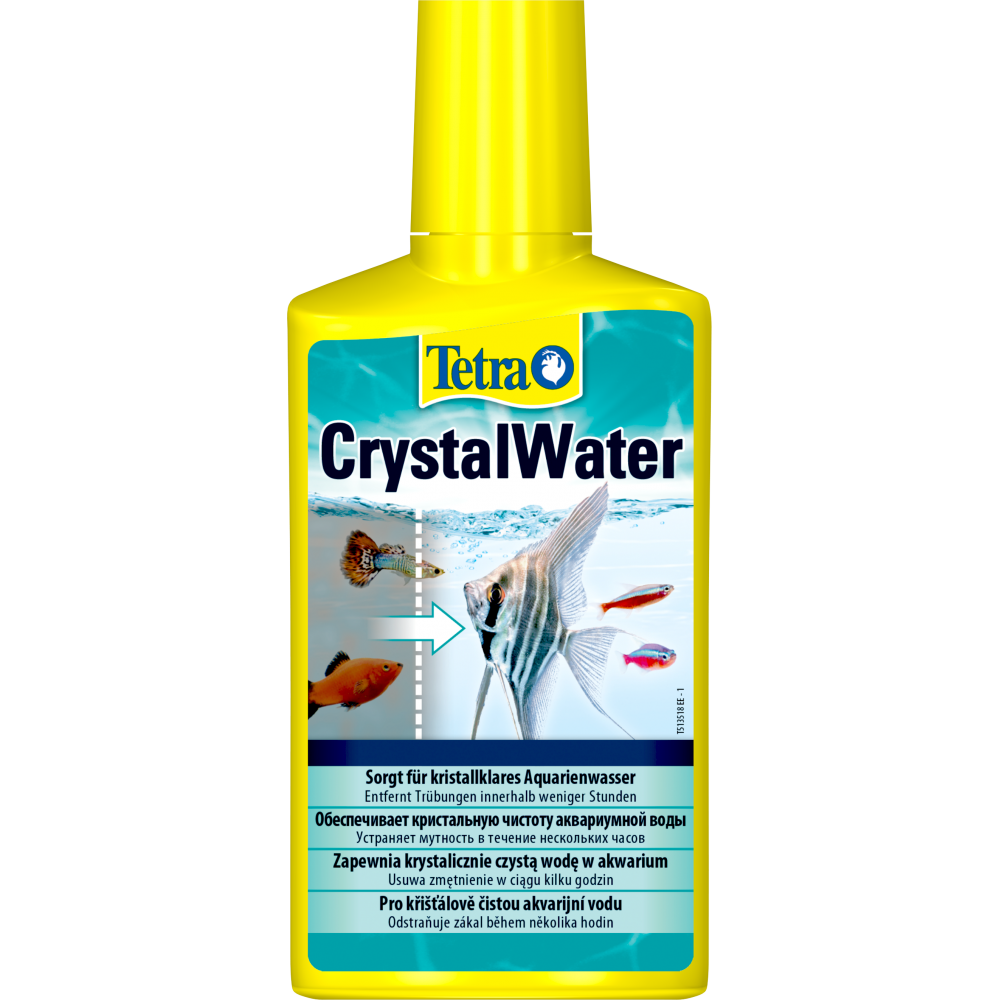 Tetra Aqua Crystal Water – це комплексний препарат, який ефективно бореться з помутнінням води в акваріумі. Завдяки складу препарату частинки ґрунту, продукти життєдіяльності риб, залишки корму та часточки рослин зв’язуються у нерозчинений осад, після чого або виводяться фільтром, або осідають на дно. Він є абсолютно безпечним для живих істот, що створюють екосистему акваріума, та людей.