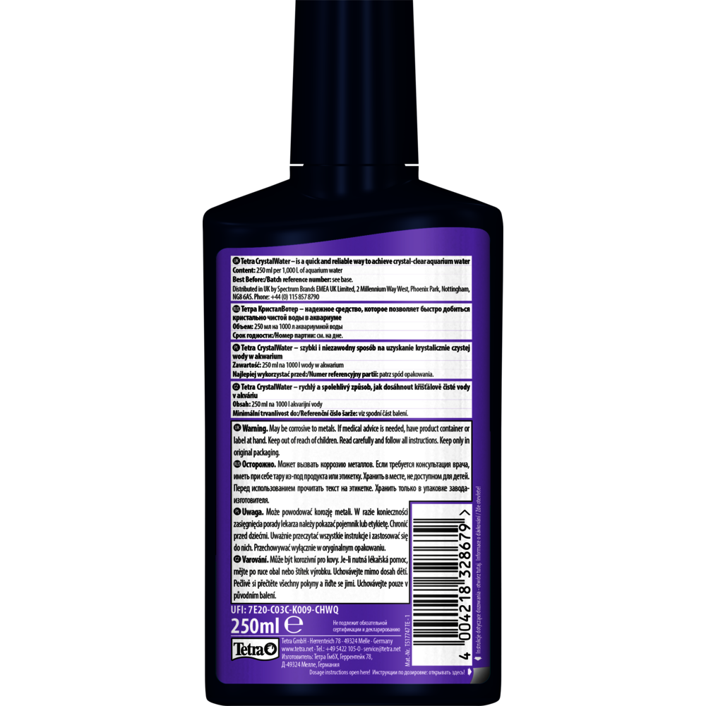 Tetra Crystal Water швидко та надійно усуває помутніння акваріумної води. Спеціальні активні компоненти зв'язують дрібні часточки бруду, які згодом ефективно видаляються акваріумним фільтром.