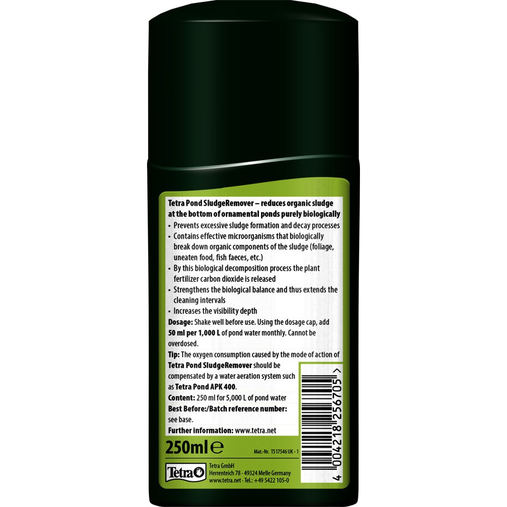 Засіб Tetra Pond «SludgeRemover» це відмінний варіант для забезпечення біологічного розкладання органічних речовин у ставковій воді, а також в донних відкладеннях. Завдяки своєму складу препарат значно підвищує якість води у ставку, покращуючи умови життя риб і рослин. Засіб швидко дає видимий результат